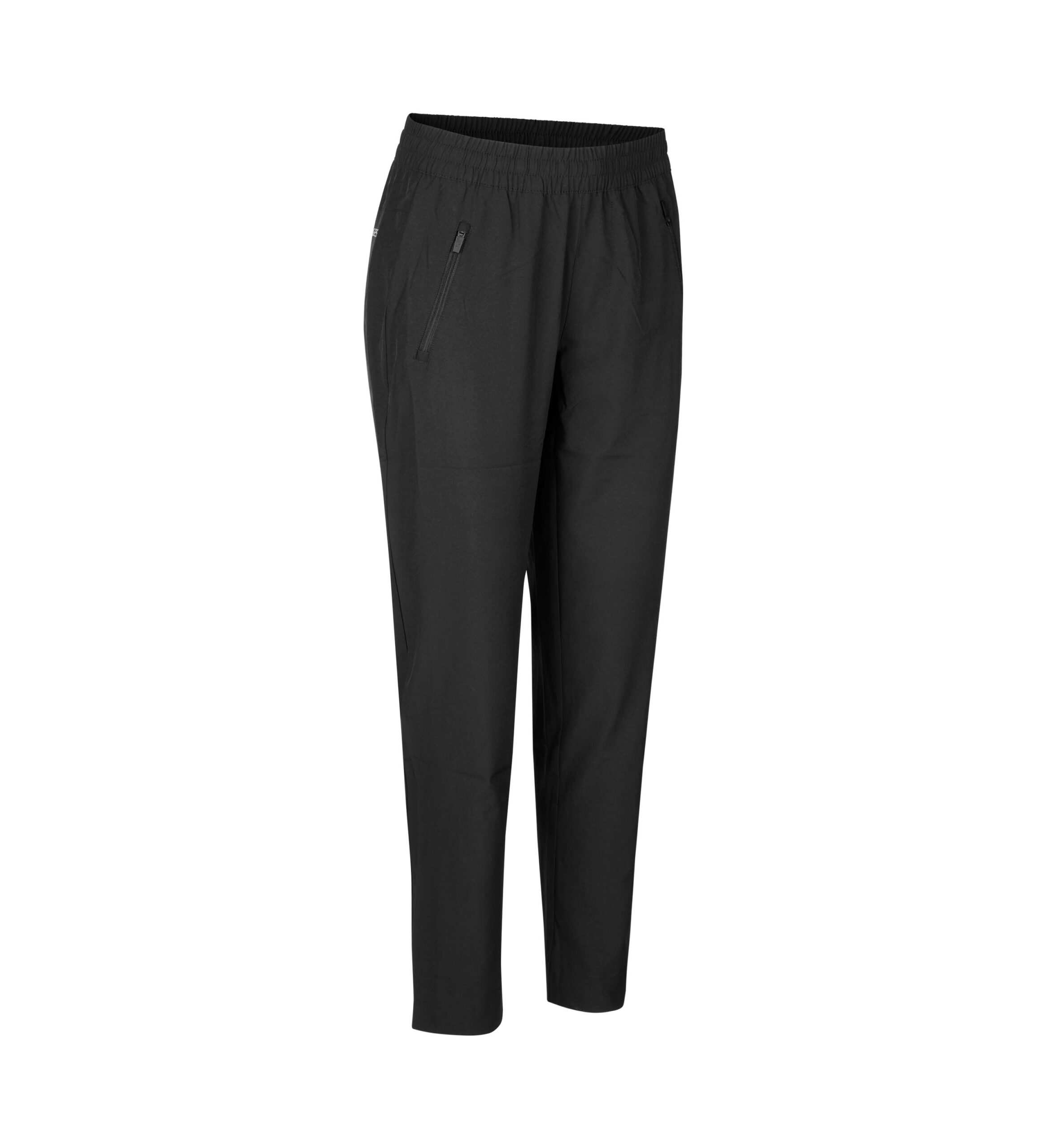 Kalhoty ideální do práce i pro volný čas. Pohodlná tkaná strečová tkanina, která se nemačká. Elastický pas a vnitřní šňůrka na stažení. Dvě přední kapsy na zip a sedlo na zádech pro dobré přizpůsobení. Úzké nohavice.